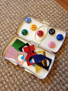 Итак, суть: несколько разноцветных магнитов и такое же количество "рубашечек" соответствующих цветов (именно "соответствующих", а не идентичных - оттенки немного отличаются, тем самым давая еще одну возможность подумать, что к чему подходит и почему так, а не иначе).